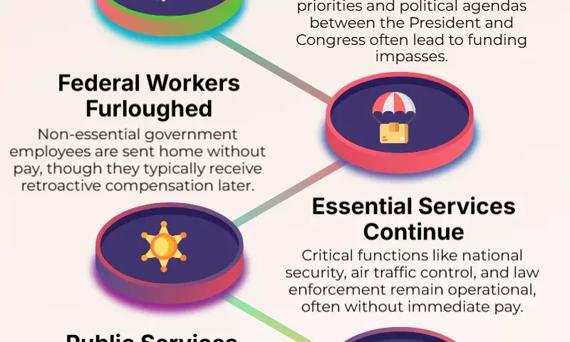 Up to 750,000 federal workers may be placed on furlough during the deadlock, which would cost about $400 million per day. Meanwhile, vital workers like military would remain unpaid. It is anticipated that the closure will hinder air travel, halt scientific research, disrupt services nationwide, and prevent the release of important economic statistics, such as Friday's jobs report.
