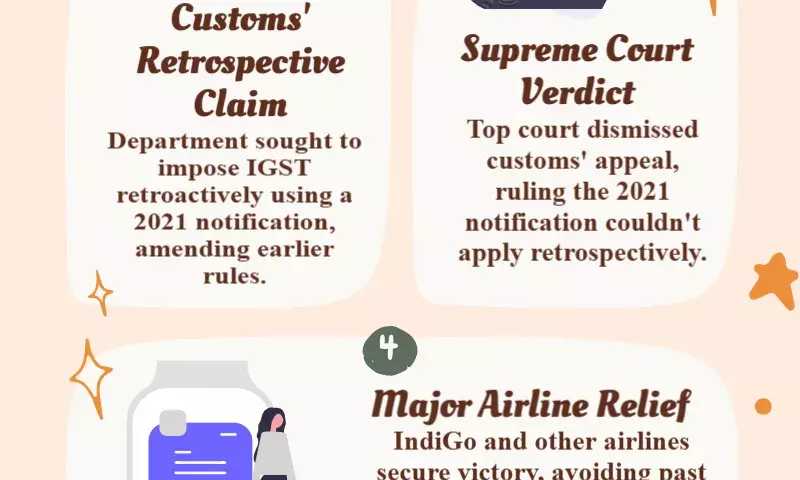 The custom department's case was heard by a bench of Justices B.V. Nagarathna and R. Mahadevan, who then sent a notice to IndiGo. The issue made its way to the highest court after the customs department appealed a March Delhi High Court decision that declared section of a 2021 customs notification that required payment of IGST and cess on such re-imported products to be unconstitutional.