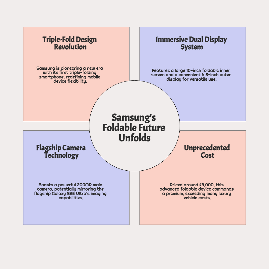 Samsung is reportedly preparing its boldest foldable yet: the Z TriFold, a trifold smartphone that could push foldable pricing into new territory at around $3,000 (≈ ₹2,64,000). If the leaks hold true, the TriFold will mark Samsung’s first serious entry into the trifold form factor, putting it in direct competition with Huawei’s Mate XTs and raising fresh questions about foldable adoption and premium pricing. Hindustan Times