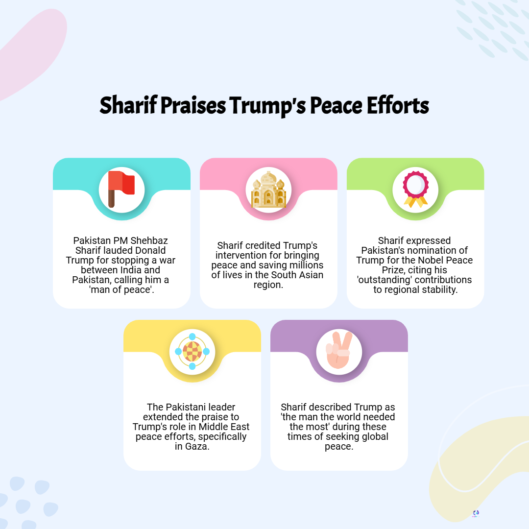 At the Sharm El-Sheikh summit, Pakistan PM Shehbaz Sharif lauds Donald Trump for averting war with India, nominates him for Nobel Peace Prize and calls him a “man of peace.” Read full details and reactions.